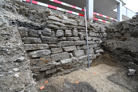 Die bisher begleiteten Grabungsarbeiten tangierten den ehemals östlichen Stadtrand mit Stadtmauern, zugehörigen Gräben und der innenliegenden Bebauung. In den Schwemmsedimenten zeigten sich diffuse vorstädtische Spuren in Form von Holzkohlebändern und einer Grube, die wenig prähistorische Keramik enthielt.