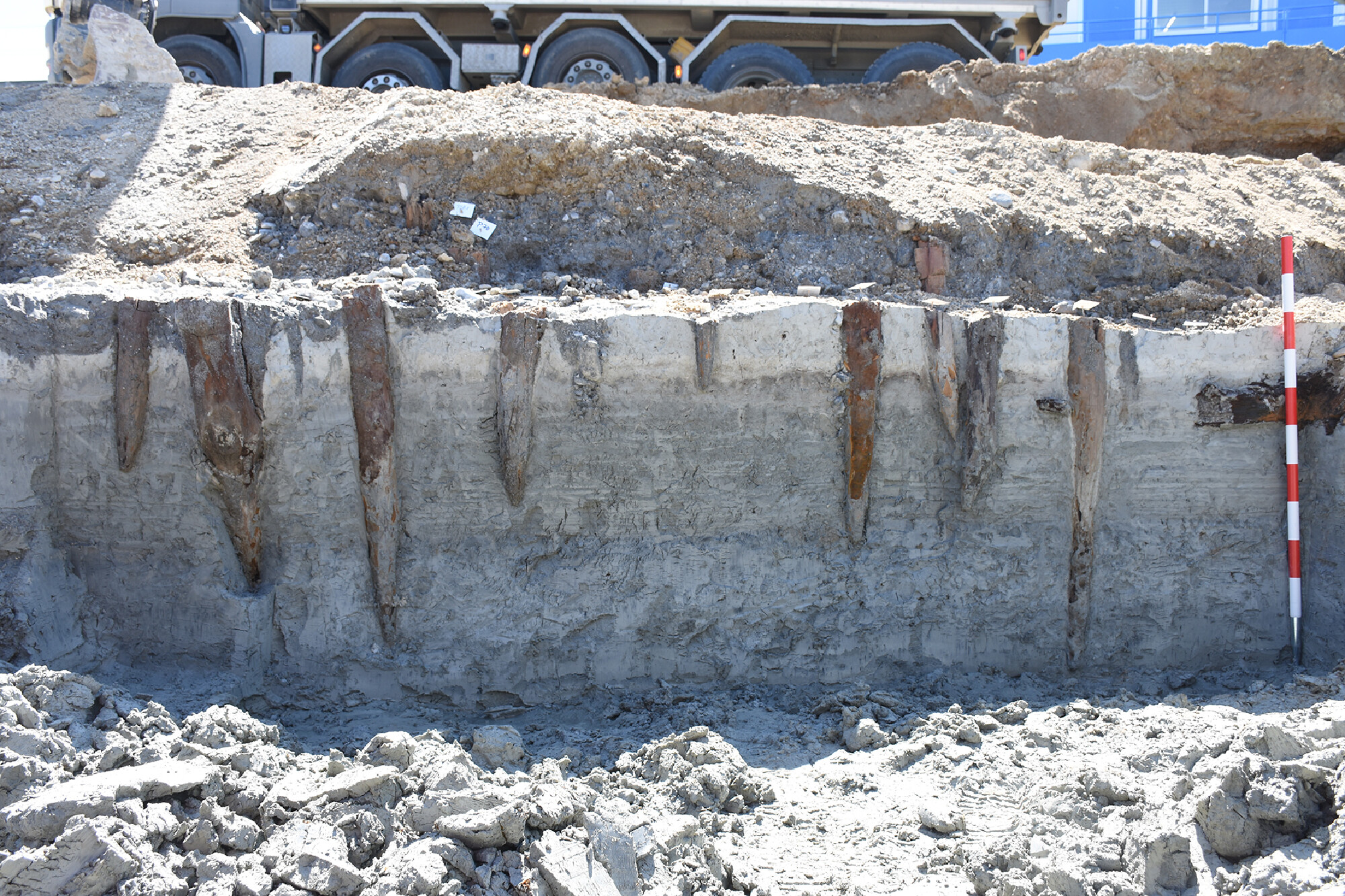 Des centaines de pilotis préhistoriques sont apparus dans le quartier de Clendy lors d'une surveillance complémentaire au début des travaux de terrassements d'un projet immobilier, alors que les deux campagnes préalables de sondages n'avaient rien révélé. Une fouille archéologique d'urgence a dû être mise en place, en parallèle de la surveillance du terrassement du reste des surfaces jusqu'à l'apparition des vestiges.